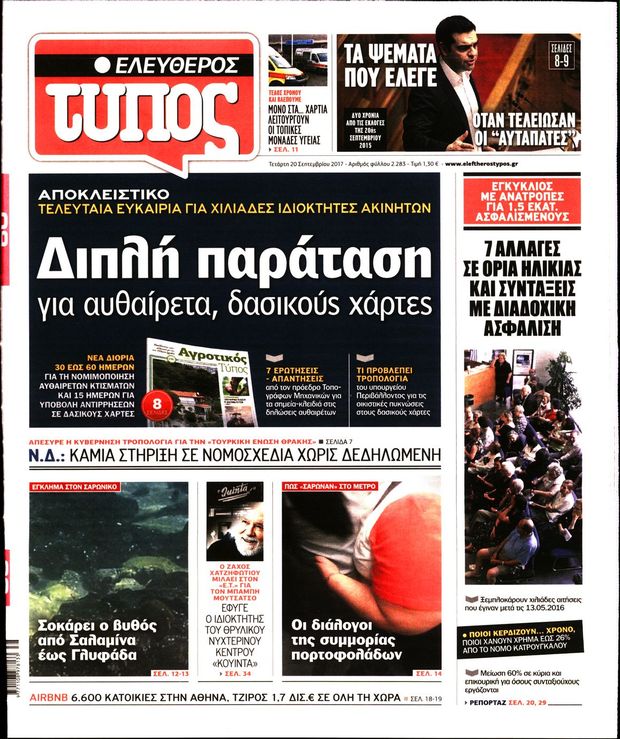 MEDIA Τα πρωτοσέλιδα των εφημερίδων 20 Σεπτεμβρίου, 2017, 8:00 πμ20 Σεπτεμβρίου, 2017 0 Facebook share Twitter