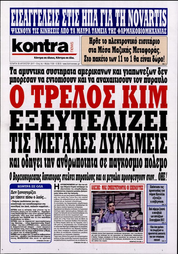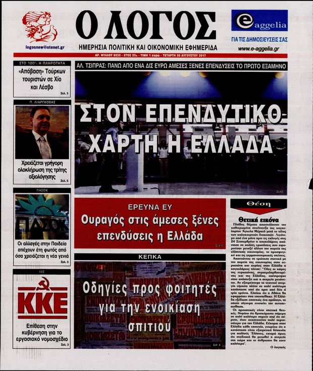 MEDIA Τα πρωτοσέλιδα των εφημερίδων 30 Αυγούστου, 2017, 8:00 πμ30 Αυγούστου, 2017 0 Facebook share Twitter