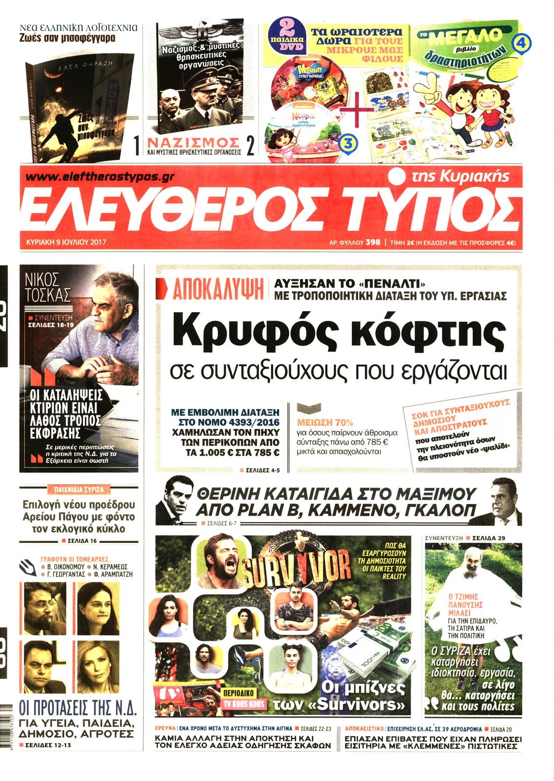 MEDIA Τα πρωτοσέλιδα των Κυριακάτικων εφημερίδων 9 Ιουλίου, 2017, 9:09 πμ9 Ιουλίου, 2017 0 Facebook share Twitter Διαβάστε τα σημερινά πρωτοσέλιδα των πολιτικών εφημερίδων:
