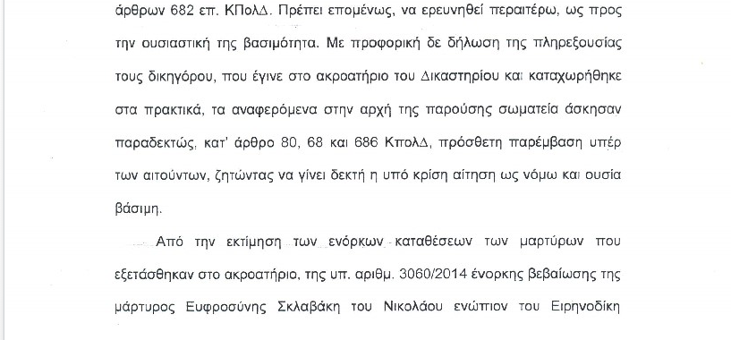 Παραθέτονται όλα τα πραγματικά γεγονότα στα οποία βασίστηκε η απόφαση και καταλήγει: