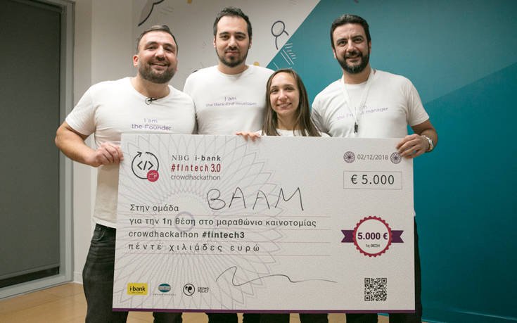 Όπως αναφέρει η ανακοίνωση, το NBG i-bank #fintech 3.0 crowdhackathon διοργανώθηκε για τρίτη συνεχή χρονιά στο πλαίσιο του προγράμματος επιχειρηματικής επιτάχυνσης για fintech startups «be finnovative» από την Εθνική Τράπεζα με την τεχνολογική και επιχειρησιακή υποστήριξη της Ελληνικής εταιρείας καινοτομίας και τεχνολογίας Crowdpolicy.
