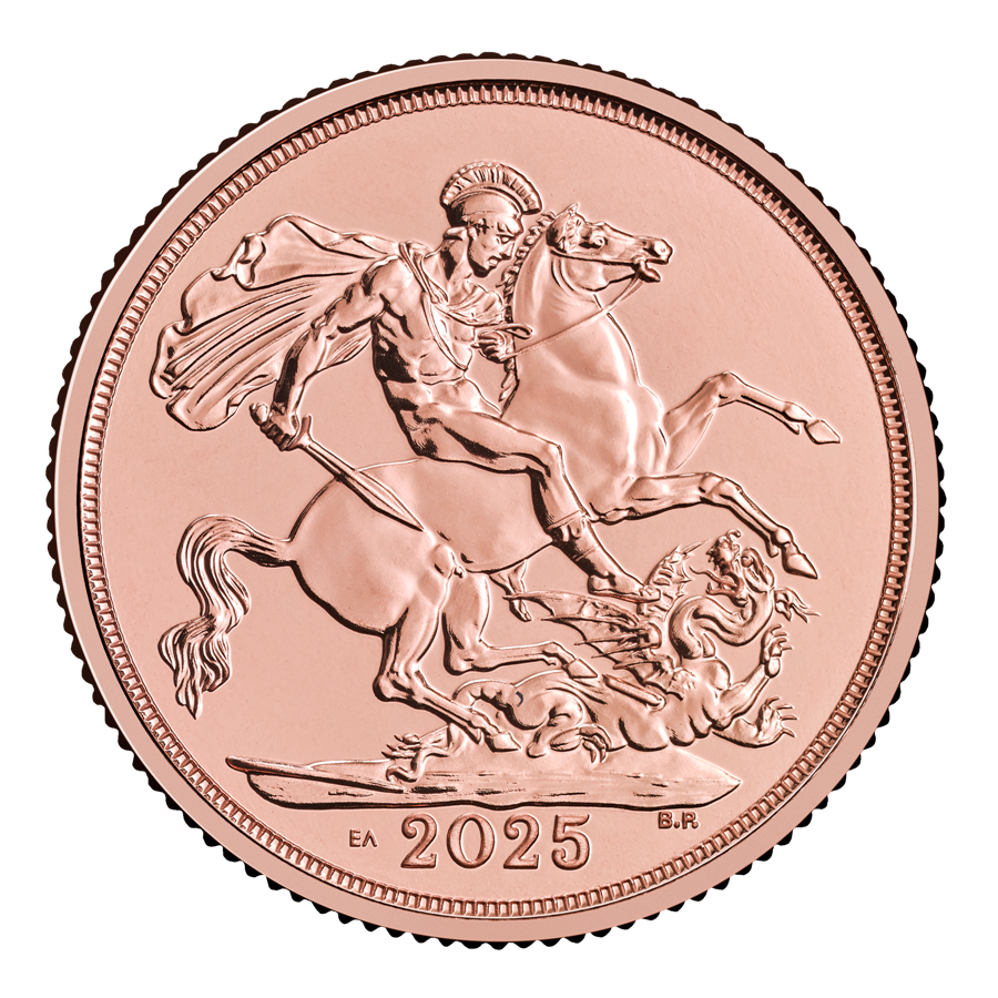 Το νόμισμα είναι καθαρότητας 22 καρατίων,  φέρει την προτομή της Α.Μ. Βασιλιά Καρόλου Γ΄, καθώς και την εμβληματική μορφή του έφιππου Αγίου Γεωργίου που κατατροπώνει τον δράκoντα.