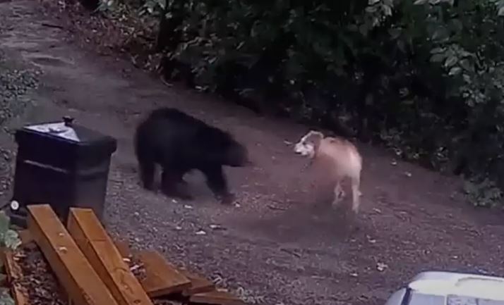 Το βίντεο από κάμερα ασφαλείας σπιτιού στη Τζόρτζια των Ηνωμένων Πολιτειών καταγράφει την επίθεση μίας μητέρας αρκούδας στο σκυλί της οικογένειας, όταν εκείνο προσπάθησε να διώξει τα μικρά της από την αυλή του σπιτιού.