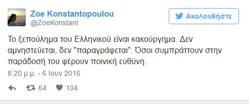 Η κ. Κωνσταντοπούλου έγραψε στο Twitter: