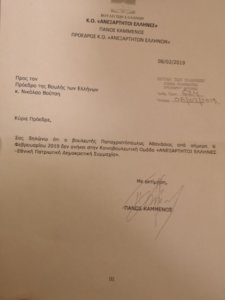 «Σας δηλώνω ότι ο βουλευτής Παπαχριστόπουλος Αθανάσιος από σήμερα 8 Φεβρουαρίου 2019 δεν ανήκει στην Κοινοβουλευτική Ομάδα Ανεξάρτητοι Έλληνες – Εθνική Πατριωτική Δημοκρατική Συμμαχία», αναφέρει στην επιστολή του ο κ. Καμμένος.