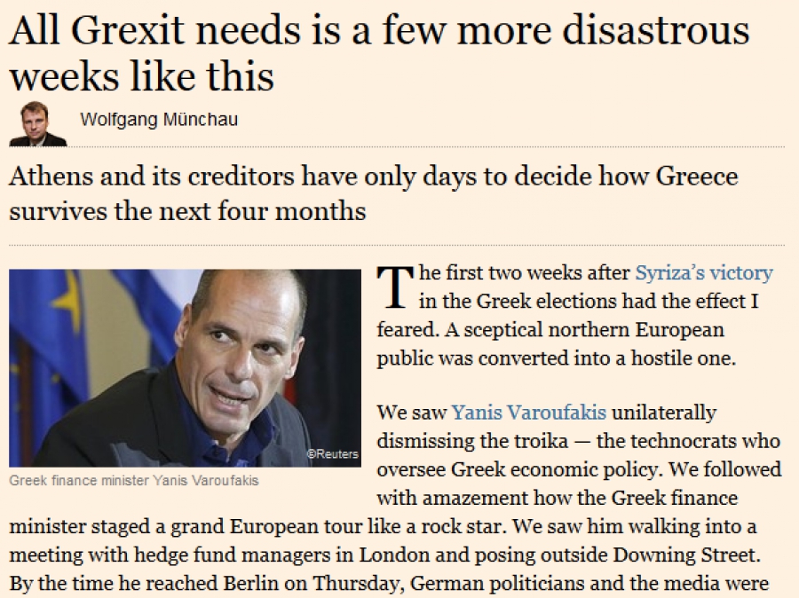 FT: To Grexit είναι μερικές καταστροφικές εβδομάδες μακριά