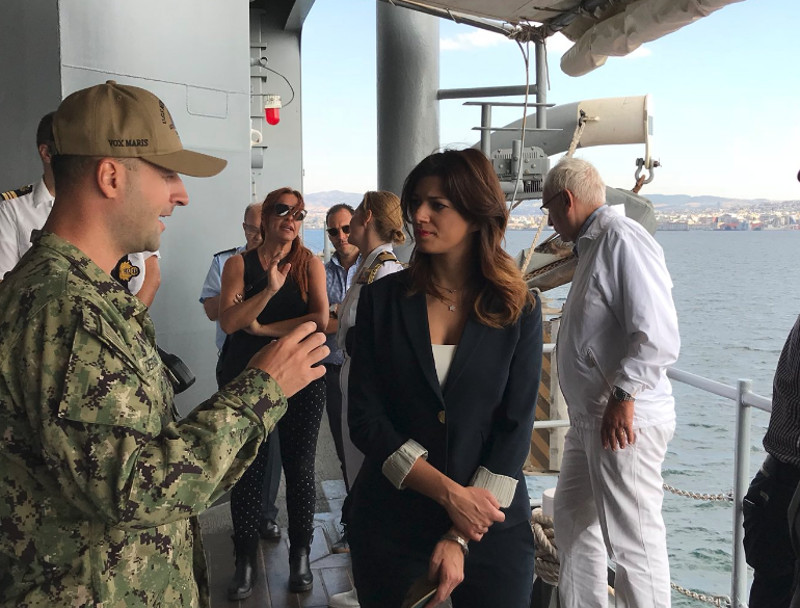Εντυπωσιασμένη έμεινε από την επίσκεψή της σήμερα το πρωί στο εντυπωσιακό USS Mount Whitney, την ναυαρχίδα του 6ου Αμερικανικού Στόλου, η υφυπουργός Μακεδονίας Θράκης Κατερίνα Νοτοπούλου.