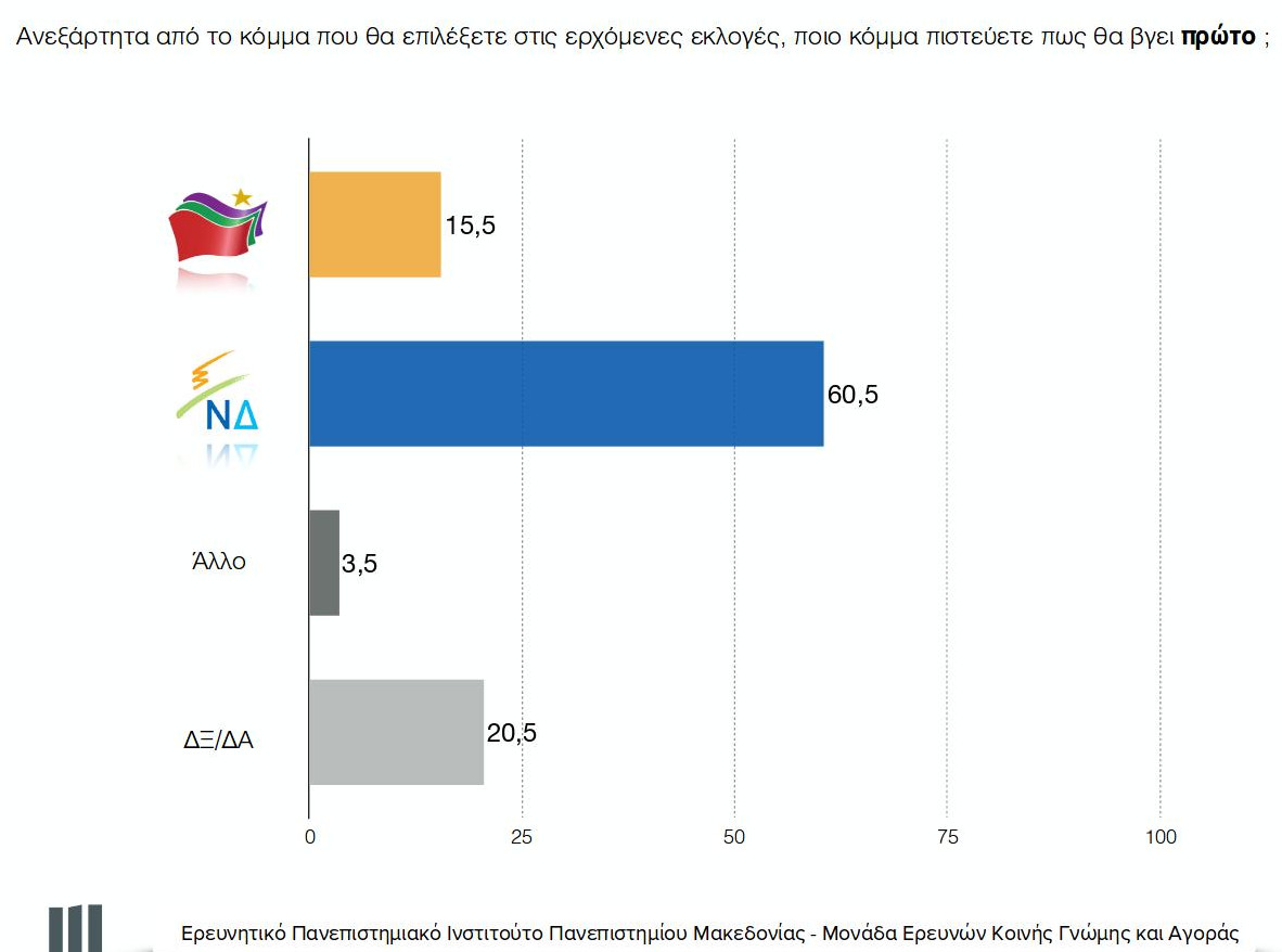Η ΝΔ διατηρεί επίσης μεγάλο προβάδισμα εκτός από την πρόθεση ψήφου και στην παράσταση νίκης.