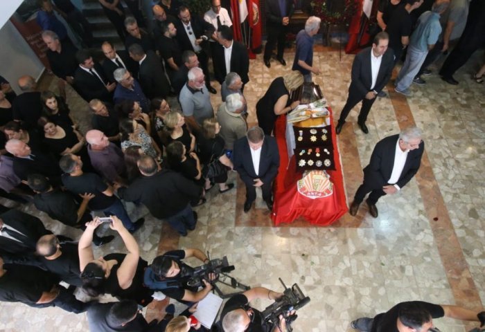 Η σορός του τέως του Προέδρου της Δημοκρατίας Δημήτρη Χριστόφια μεταφέρθηκε στην εκκλησία από το οίκημα της ΠΕΟ εν πομπή και σε κλίμα έντονης φόρτισης με το πλήθος να χειροκροτεί και να τραγουδά το «της Δικαιοσύνης ήλιε νοητέ».