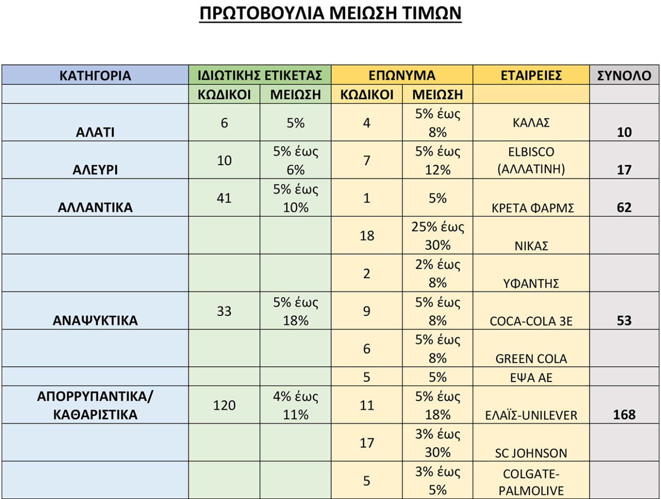Μειώνονται οι τιμές σε πάνω από 2.000 προϊόντα στα σούπερ μάρκετ – Η λίστα που ανακοίνωσε το υπουργείο Ανάπτυξης