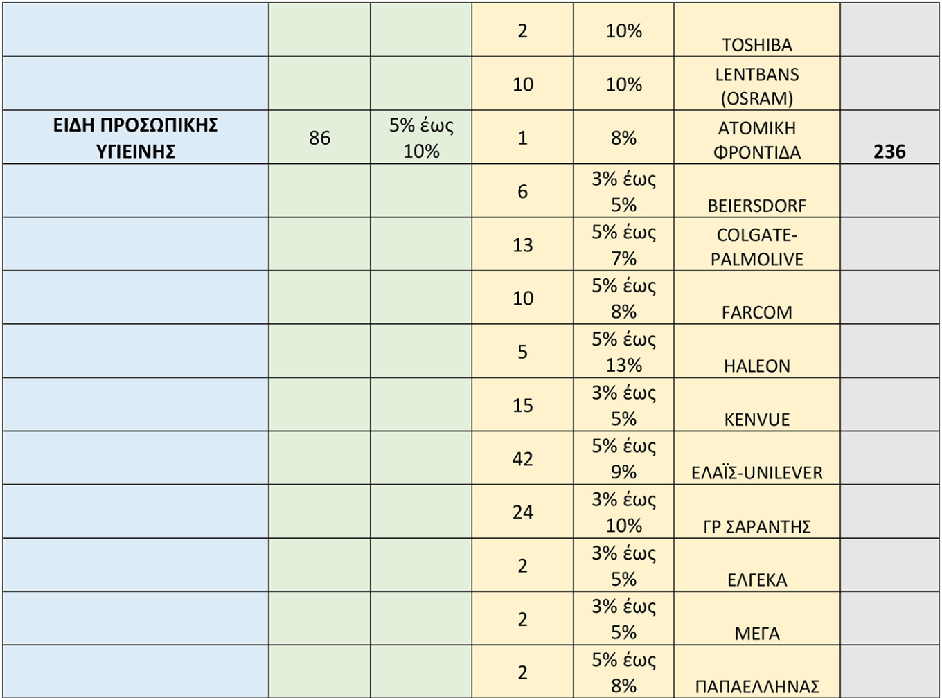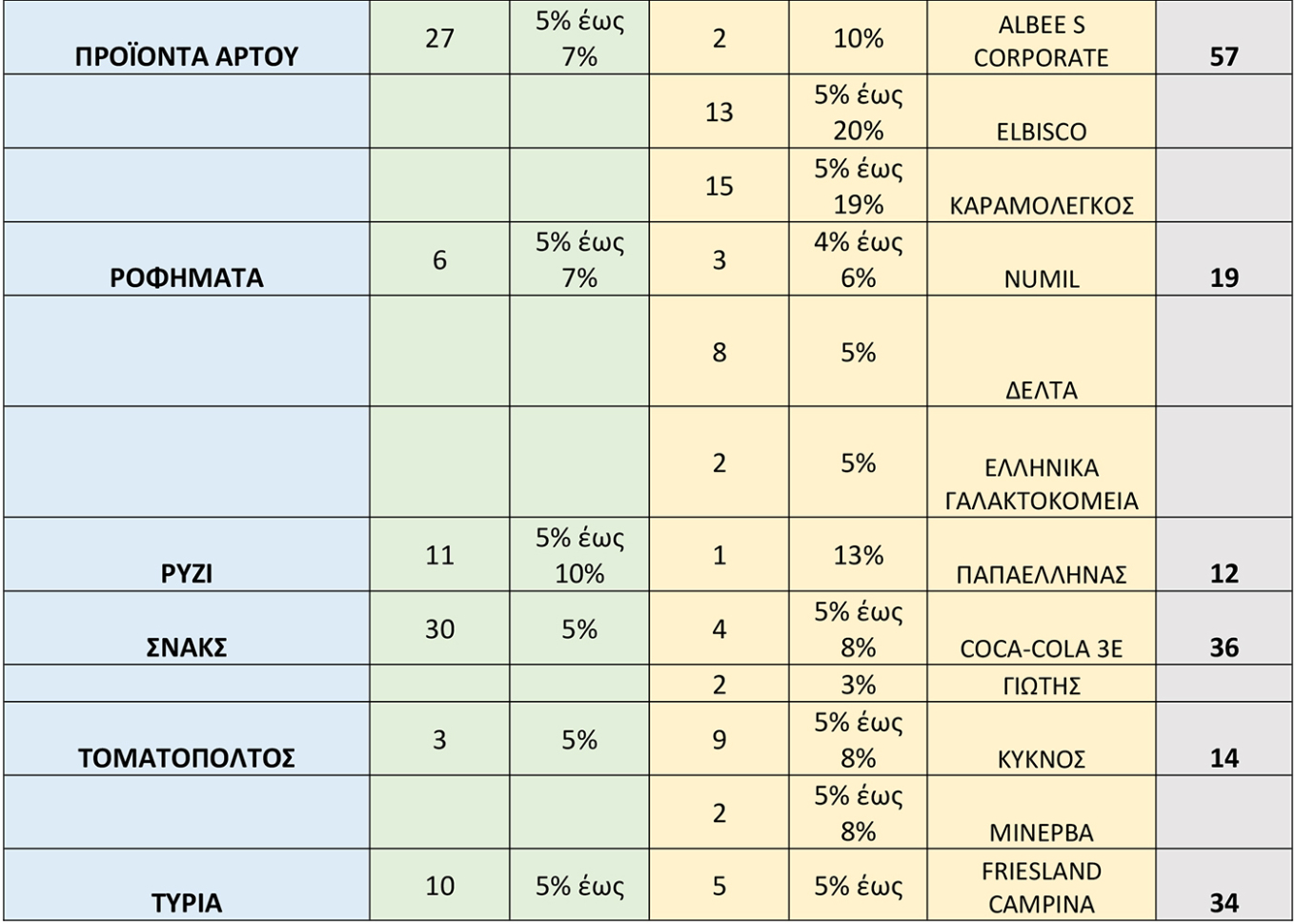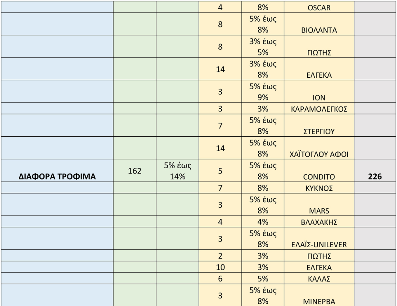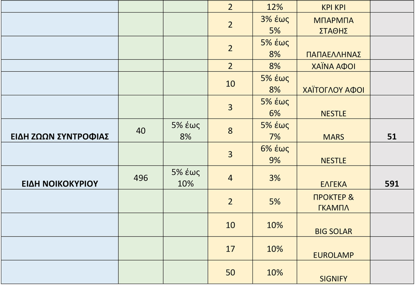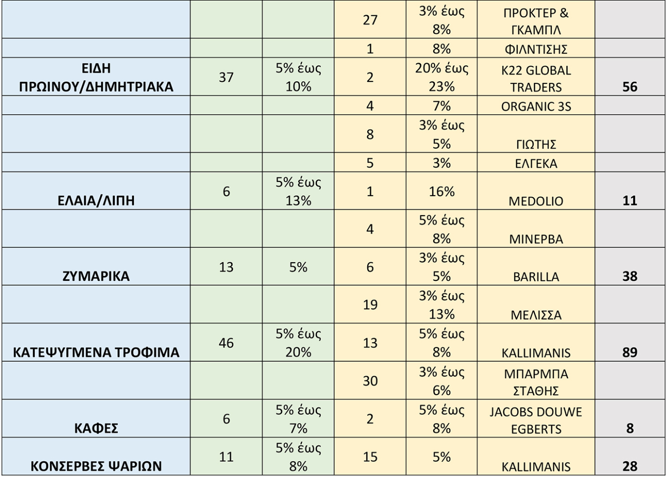 Πρόκειται για 1074 κωδικούς που αφορούν τρόφιμα και 1.106 κωδικούς από άλλες κατηγορίες προϊόντων, με τον συνολικό αριθμό να ξεπερνά «σημαντικά» τον αρχικό στόχο, όπως σημειώνεται στην ανακοίνωση του υπουργείου.