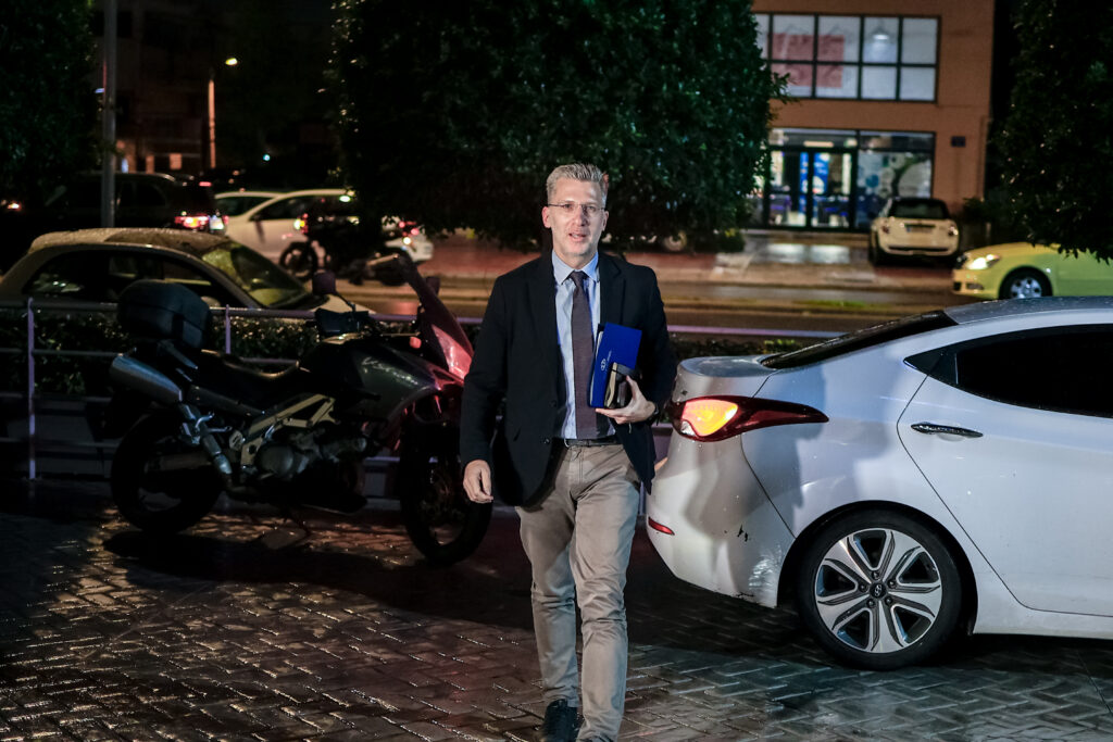 Παρόντες στα γραφεία της οδού Πειραιώς ο κυβερνητικός εκπρόσωπος Παύλος Μαρινάκης, ο υπουργός Υγείας Άδωνις Γεωργιάδης, και από το Μέγαρο μαξίμου οι Γιάννης Μπρατάκος και Κυρα Κάπη.