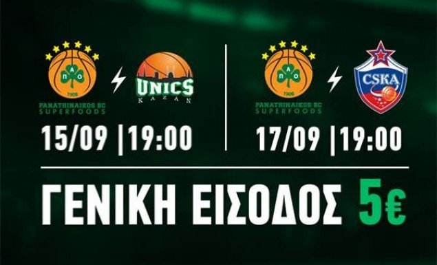 Γενική είσοδος 5 ευρώ για ΤΣΣΚΑ και Ούνικς
