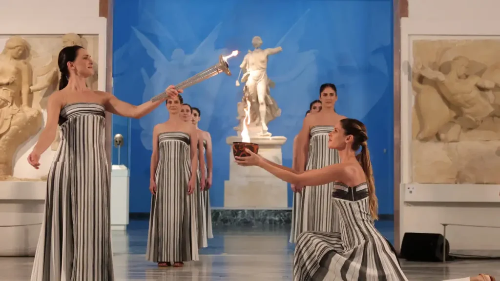 Στον εσωτερικό χώρο του Αρχαιολογικού Μουσείου Ολυμπίας πραγματοποιήθηκε η Τελετή Αφής της Ολυμπιακής Φλόγας, λόγω των προβλέψεων για δυσμενείς καιρικές συνθήκες.