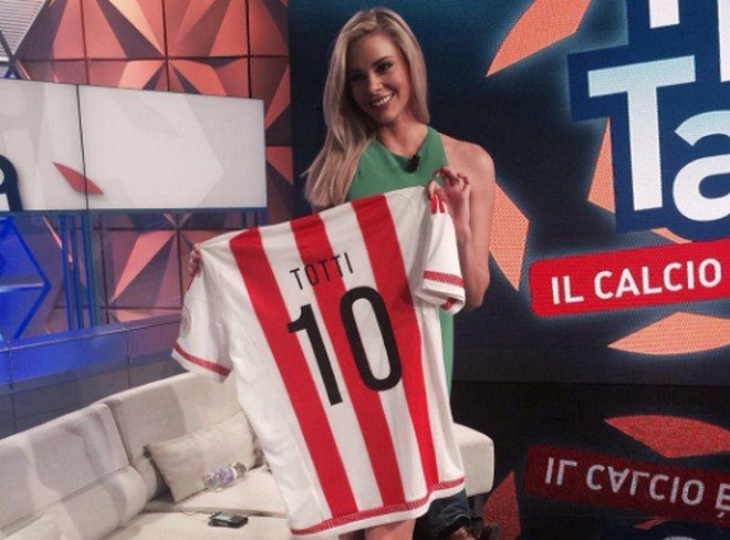 Το γνωστό μοντέλο εμφάνισε στο «γυαλί» με ερυθρόλευκη φανέλα που έγραφε το όνομα του ηγέτη της Ρόμα