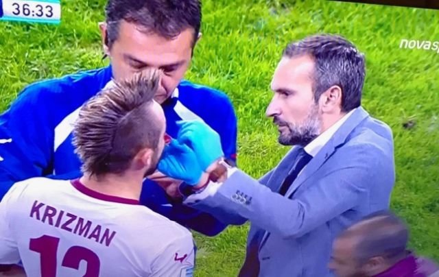 Για τραυματισμό του Κρίζμαν στη μύτη από αγκωνιά του παίκτη του ΠΑΟΚ