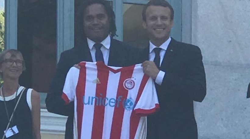 Ανάμεσα στους παρευρισκομένους ήταν και ο σύμβουλος στρατηγικής του Ολυμπιακού, Κριστιάν Καρεμπε, ο οποίος προσέφερε στον Μακρόν…