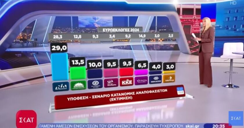 slider, ΠΟΛΙΤΙΚΗ Δημοσκόπηση ΣΚΑΪ: Πρώτη με 29% η ΝΔ – Ποιο κόμμα είναι δεύτερο 29 Μαΐου, 2025, 9:06 μμ29 Μαΐου, 2025