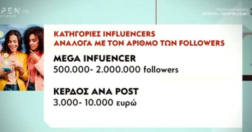 3 top δεξιά, ΚΟΙΝΩΝΙΑ Ζαλίζουν τα ποσά που βγάζουν οι επαγγελματίες… influencers! (BINTEO) 10 Οκτωβρίου, 2025, 1:30 μμ10 Οκτωβρίου, 2025