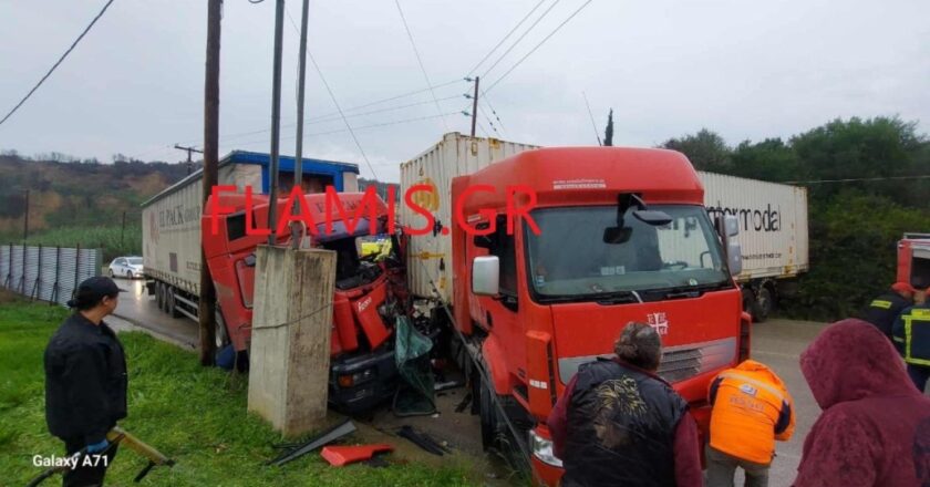 Εγκλωβίστηκε στις λαμαρίνες οδηγός φορτηγού στην Πατρών – Πύργου (ΦΩΤΟ)